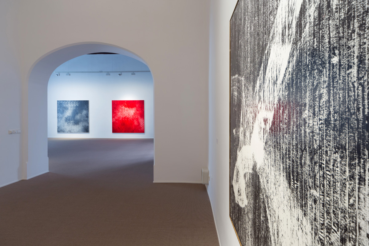 Idris Khan (Birmingham, United Kingdom, 1978) also uses words in his works, yet with a considerably profounder gesture. His pieces look like almost monochrome cloud formations that powerfully spread over the surface until reaching all four corners of large-size panels and sheets of paper. They create peculiar flow dynamics, as the cloud material seems to freeze at the height of action.