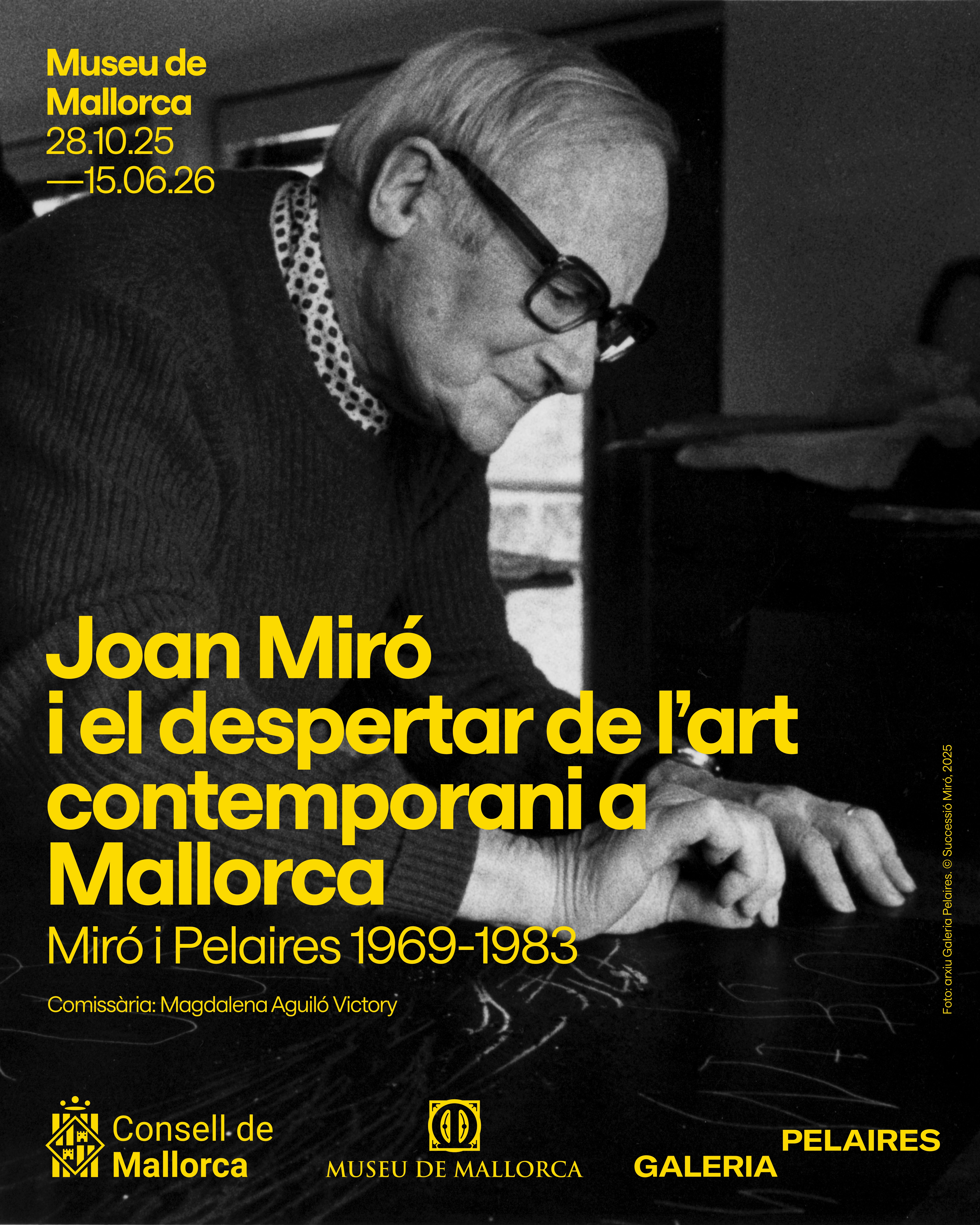 Consell de Mallorca will open on Tuesday, October 28, 2025, the exhibition "Joan Miró i el despertar de l'art contemporani a Mallorca. Miró i Pelaires 1969-1983" ("Joan Miró and the Awakening of Contemporary Art in Mallorca. Miró and Pelaires 19691983"), a show that counts on the indispensable collaboration of Galeria Pelaires and the curatorship of Magdalena Aguiló, independent curator and former director of the Fundació Miró Mallorca.